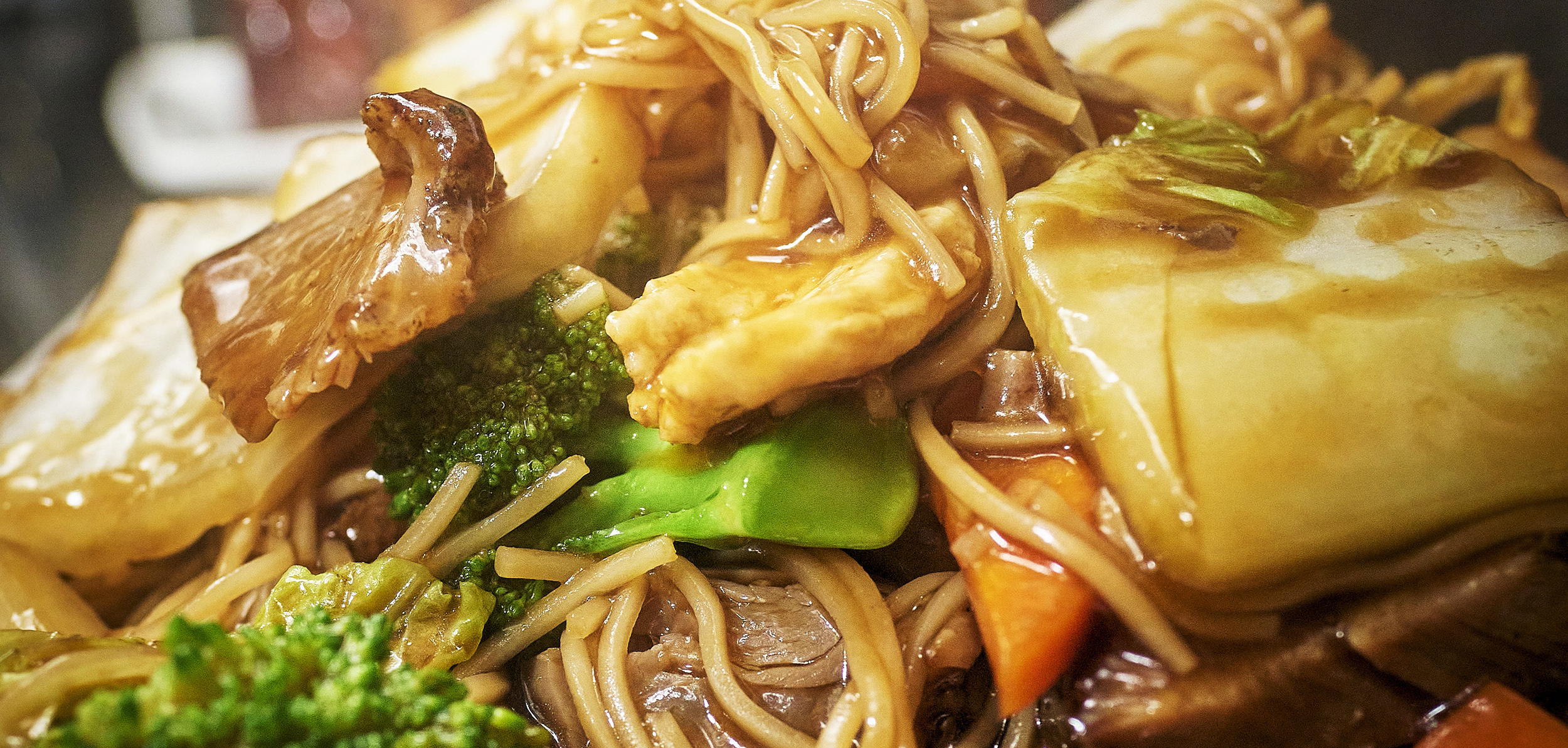 Egg noodles, chicken, pork, shrimp & vegetables in white garlic & light soy sauce